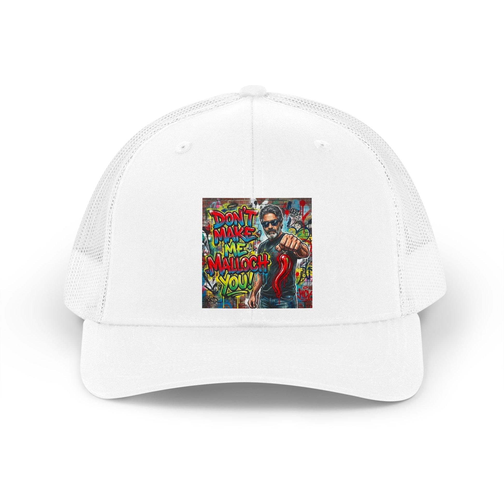 A retro trucker hat that brings bold street-art energy to casual days. The mid-profile, six-panel construction and breathable mesh back keep things light and comfortable, while the Permacurv® visor holds its shape through long wear. The front panel showcases vibrant, graffiti-style artwork that reads like a mini canvas—bright colors, layered texture, and a confident attitude. Wear it on sunny walks, weekend markets, or while cruising with friends; it adds an expressive, laid-back edge without shouting for attention. The snapback closure lets you dial in the fit quickly, and the soft polyester-cotton face fabric feels smooth against the brow.