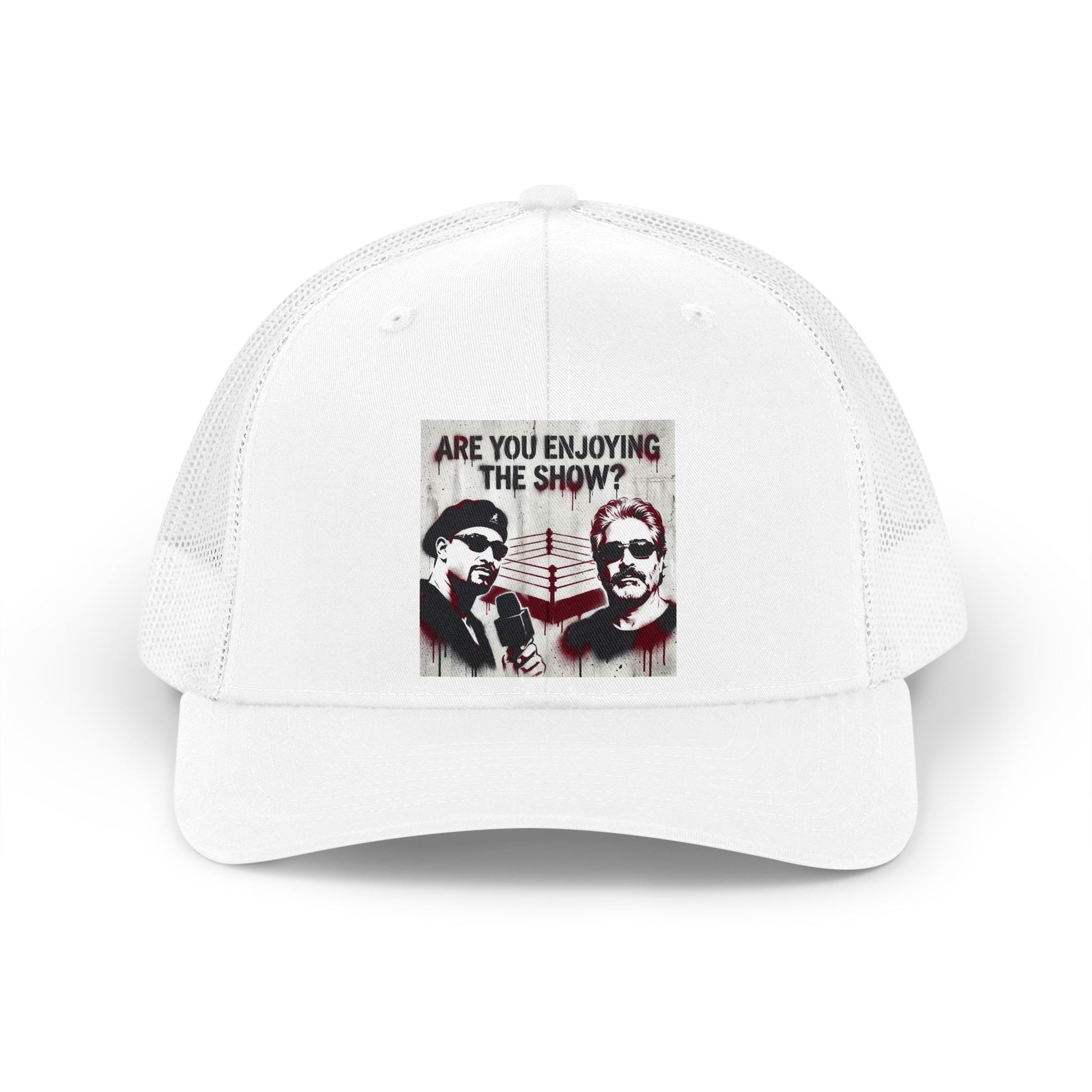 Retro Trucker Hat – "Are You Enjoying the Show?" Vintage Mic Podcaster Cap/Coach and Bro