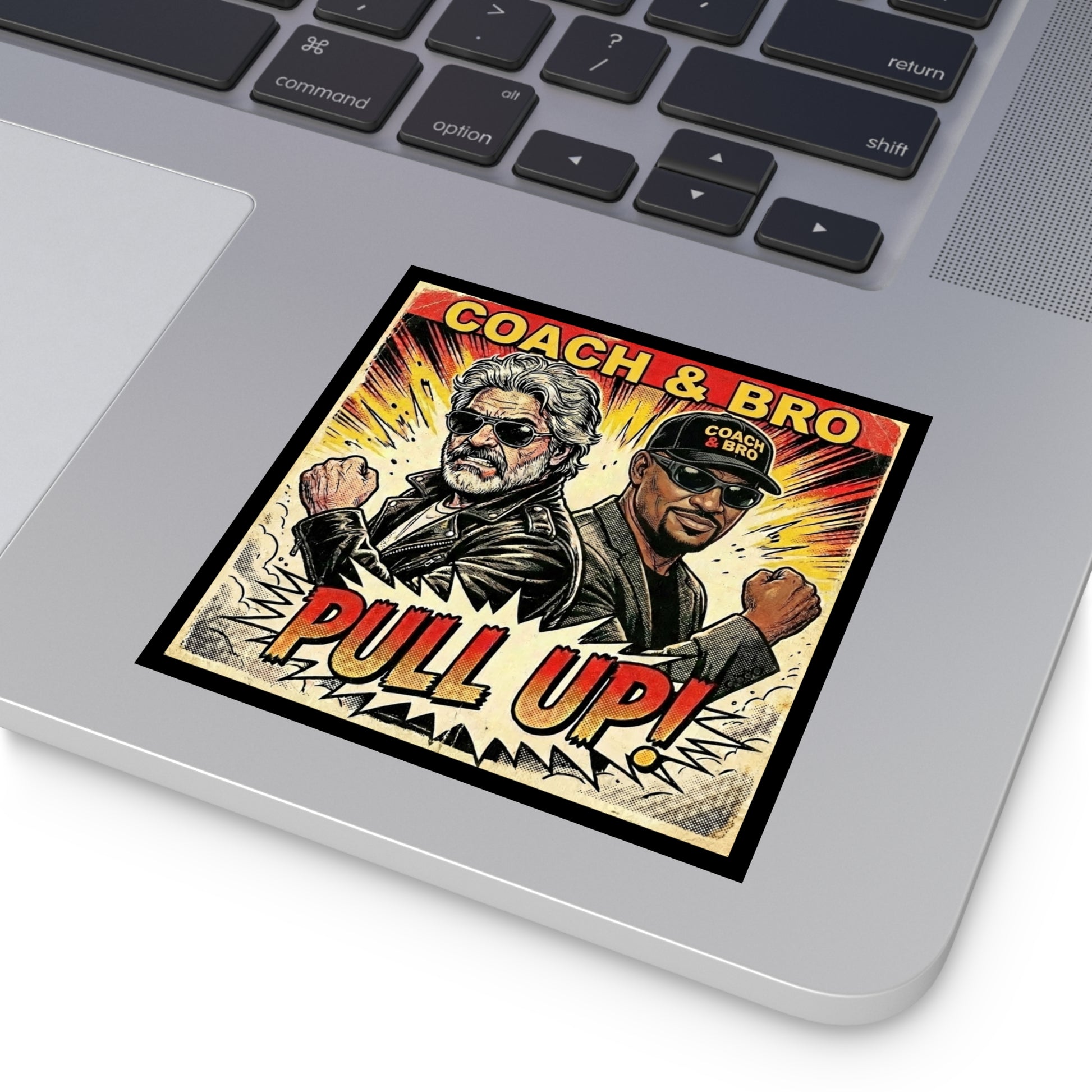 Square Sticker — "Coach & Bro Pull Up!" Retro Comic Design (Indoor/Outdoor)